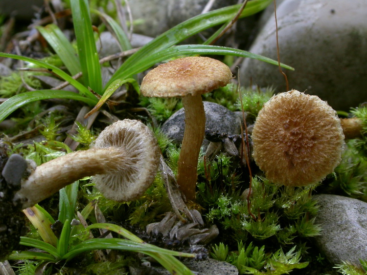 Funddaten: 25.08.2007; MTB 8034/4/1/4, 580 m, Puppling, auf sehr schottriger, lichter Stelle, bei Kiefern, Weiden und sehr jungen Fichten; gesellig (>10 Fk); Hut: bis 3 cm breit, schon jung flach gewölbt, später ausgebreitet, nicht gebuckelt, jung am und um den Scheitel sparrig beschuppt, zum Rand hin grobfilzig bis faserschuppig, alt verkahlend, jung lebhaft orangeocker, alt dunkler rötlichbraun (wässrig wirkend), Hutrand jung durch Cortina mit dem Stiel verbunden; Stiel: bis 3,5 cm lang, bis 0,4 cm breit, zylindrisch, basal gleichdick, jung nach dem Abreißen der Cortina mit schnell vergänglicher Ringzone, darüber schwach beschürfelt und blassocker, darunter auf blassocker Grund mit ockerbraunen bis orangebraunen abstehenden Faserschüppchen besetzt, Basis meist etwas heller (creme) abgesetzt; Lamellen: gerade angewachsen, bisweilen mit Zahn etwas herablaufend, mäßig gedrängt, jung ockerfarben, später olivbraun bis rostbraun, Schneiden heller flockig; Fleisch: blass ocker bis wässerig braun; Geruch: schwach erdig-staubig; Cheilozystiden: meist kettenartig gegliedert, polymorph, aus kugeligen, blasigen und keuligen, bisweilen schwach ausgezogenen Zellen mit ca.. 1 µm dicken Wänden, Endzellen häufig ockerbräunlich pigmentiert, Kugeln ca. 20-35 breit, Keulen ca. 30-50 lang und 10-15 breit; Pleurozystiden: keine; Kaulozystiden: keine, Zellen der Stielbekleidung zylindrisch mit abgerundeten Enden, ca. 10-14 breit, ockerlich inkrustiert, Wände um 0,5 µm dick; Basidien:  4-sporig, ca. 28-35 x 10; Sporen: elliptisch bis bohnenförmig, recht verschieden gestaltet (teils auch etwas konisch zulaufend und mit sehr breiter Apiculusseite), 8,9 x 5,3 (8-10 x 5-6), Q=1,68 (1,4-2);