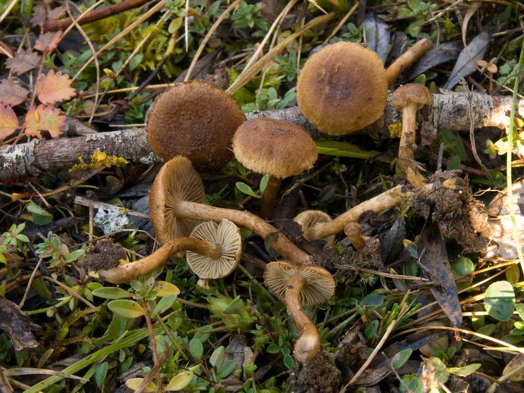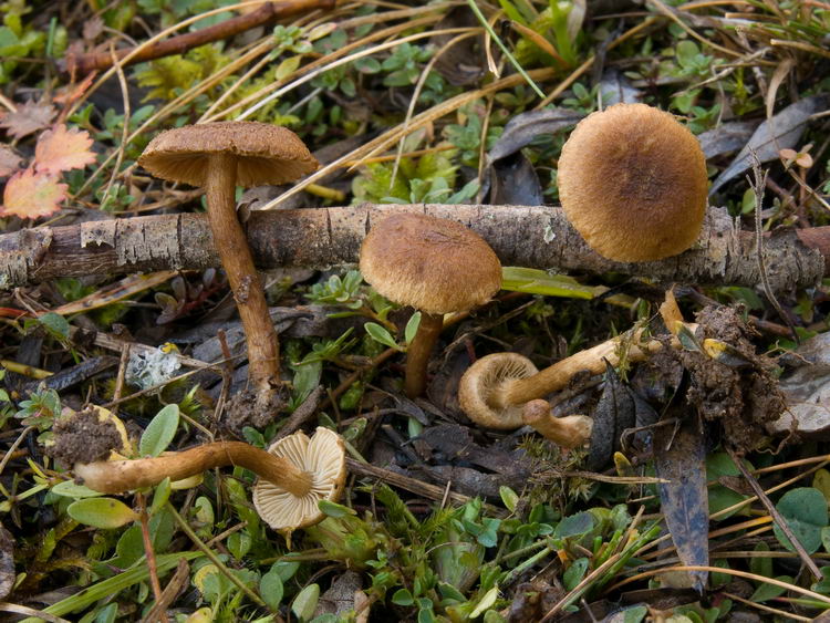 Funddaten: 05.11.2009; Fundort: MTB 7735-4-3-2, 490 m; München, Fröttmaninger Heide, am Südrand des Kiefernwäldchens nahe am Radlparkplatz Steinplatte; am Rand eines Schotterpfades, auf Erde bei Salix spec. und (ziemlich entfernt) Kiefer, gesellig (>10 Fk); Hut: bis 1,9 cm breit, jung halbkugelig, später flach gewölbt und ungebuckelt, Oberfläche jung grob filzig, später klein- bis faserschuppig aufbrechend, am Scheitel auch schollig, Hutrand jung durch Cortina mit dem Stiel verbunden, lebhaft gelbbraun bis rostbraun; Stiel: bis 3,5 x 0,3 cm, zylindrisch, basal gleichdick, kaum bereift, eher wollig filzig überfasert, +/- hutfarben; Lamellen: gerade angewachsen bis leicht herablaufend, mäßig gedrängt, jung olivocker, alt olivbraun; Schneiden etwas heller flockig; Fleisch: im Hut beige, über den Lamellen wässrig olivbraun, im Stiel olivocker bis olivbraun; Geruch: etwas fischig-tranig; Cheilozystiden: keulig bis blasig, meist mit breiten Basalzellen, verzweigt, seltener auch etwas kettig angeordnet, Endzellen ca. 20-38 x 12-19, mit leicht verdickter, ca. bis 0,3 µm breiter Wand, in KOH hyalin bis blass gelblich; Pleurozystiden: -; Stielbekleidung: -; Basidien: überwiegend 4-sporig, 2sporige eingestreut, in KOH teilweise gelb, ca. 30-36 x 7,5-8,5; Sporen: ellipsoid, seltener etwas bohnenförmig eingedellt, 8,8 x 5,5 (8-10 x 5-6), Q=1,61 (1,49-1,82);