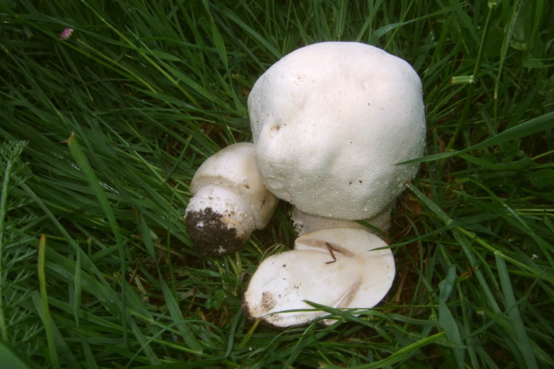 vorgestern habe ich diesen Pilz gekocht. Es roch gut, aber aus Unsicherheit habe ich nichts gegessen. Gestern waren wir wieder bei der selben Stelle, haben diese auf dem Bild neu gefunden, und diesmal die Wurzel genauer angeschaut. Sie wird beim Schnitt langsam leicht gelblich. Nach dem "Naturführer PILZE" von Shelley Evans, Geoffrey Kibby auf Seite 30 ist es exakt der Schafchamignon (Agaricus arvensis). Was meint Ihr? Grüße Ngoc Sa P.S.: Mein Name spricht sich wie "Schah" (von Persien)