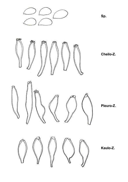 Sporen schlanker oder gedrungener, etwas spindelig (7,3)8-9,3 x 4,7-5,5 (6) Cheilo-Z. fast durchweg in gleichem Maße beschupft, schlanker oder dicker