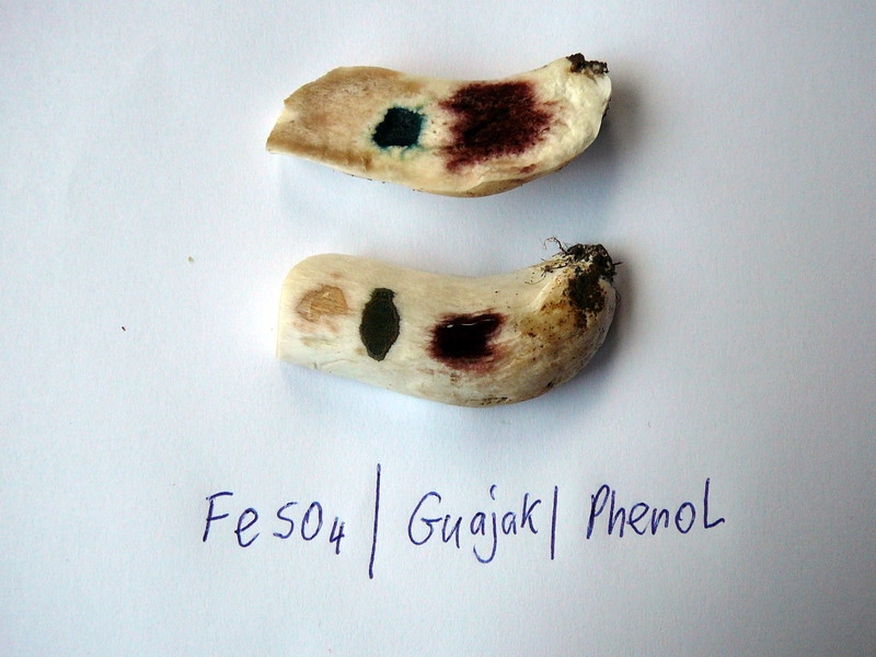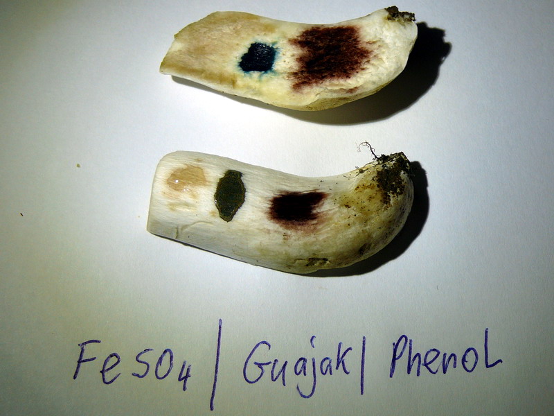 und die Farbreaktionen auf Sieloberfläche und Stielfleisch.