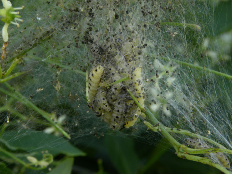 Eine Gespinstmotte? Welche Pflanze da eingesponnen wurde, können wir leider nicht sagen.