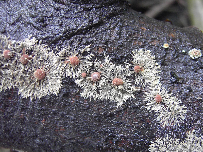 Hallo Rita Diesem Kerl bin ich schon länger auf der Spur. Ich finde ihn immer bei Hypoxylon/Kohlenbeeren. Im Pilzkompendium von Gerrit und Keizer ist ein Bild drin von Hypoxylon heweianum/Kleinsporige Kohlenbeere mit Nebenfruchtform, das exakt meiner eigenen Foto gleicht. Ob es sich um dieselbe Art handelt, kann ich nicht sagen, aber ich denke, es geht in diese Richtung.