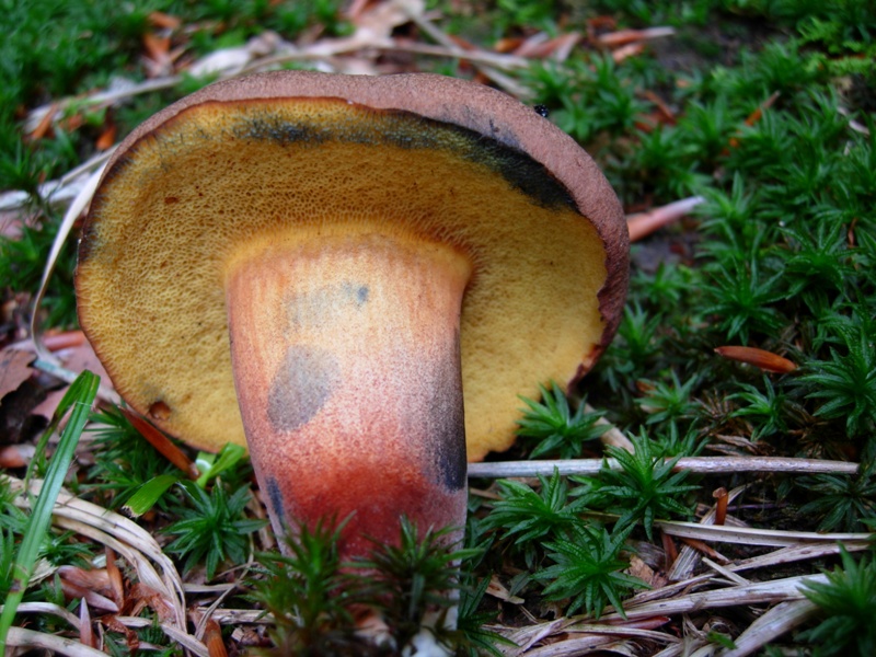 hallo ich schon wieder, will nur noch schnell meinen schwarzblauenden röhrling zeigen den ich gestern gefunden habe. dachte es wär ein flocki drum hab ich ihn ausgedreht. wenn ich besser geschaut hätte, hätte ich ein foto ohne die schwarzen flecken gemacht, aber jetzt ist es halt so. sieht man eben warum der so heißt. mfg schdaipilz