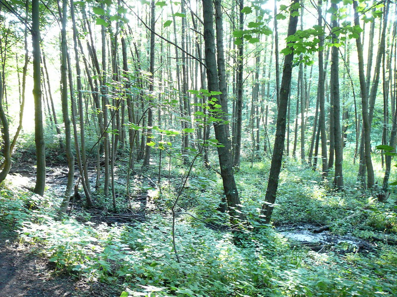 Der Bach entspringt aus einem Feuchtgebiet und schlängelt sich durch sehr feuchte Erlenbrüche. Links und rechts davon Laubwaldhänge (Nord und Südhänge) mit teilweise sehr alten Baumbestand und hohen Todholzanteil.