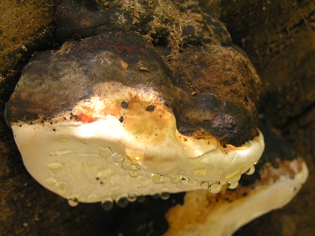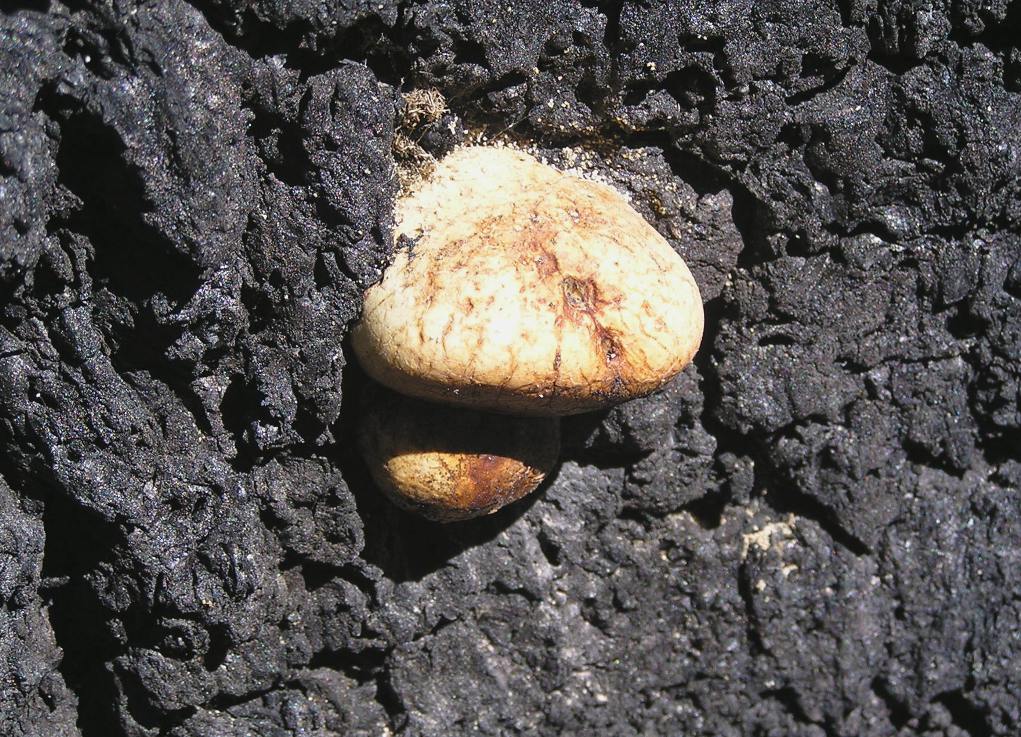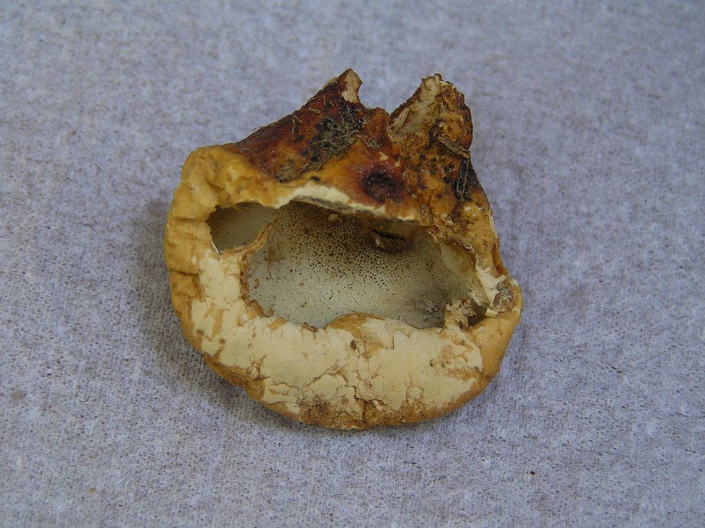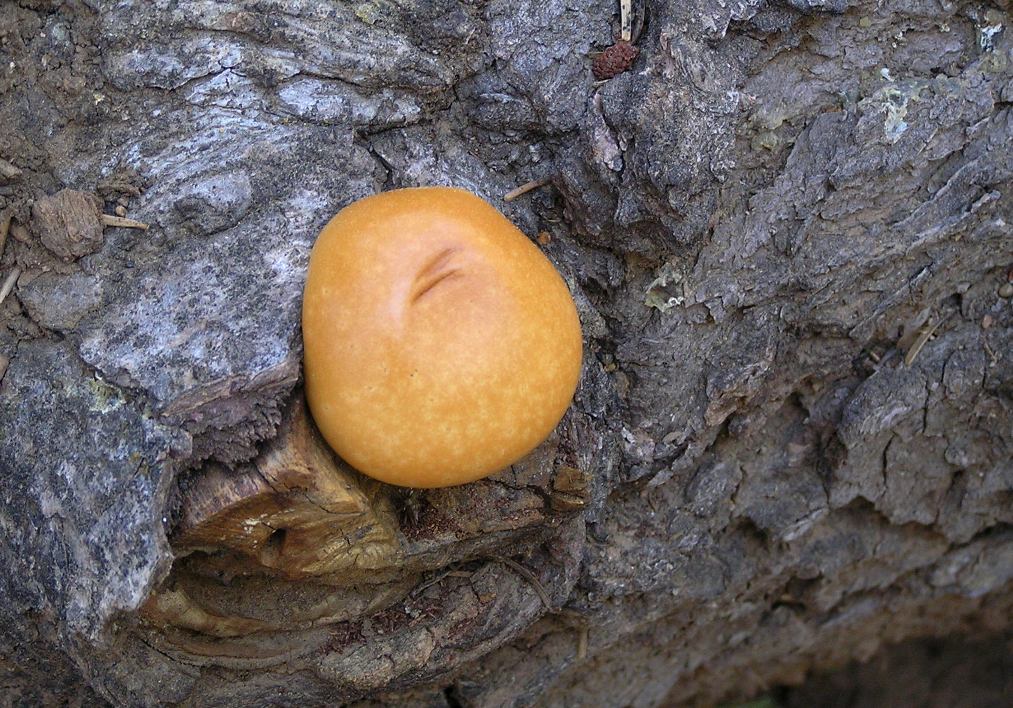 Veiled polypore/ Cryptoporus volvatu , auf dem Boden lagen noch einige Vorjahresexemplare bei denen sich der sehr feste „Schleier“ geöffnet hatte und man die Poren erkennen konnte.