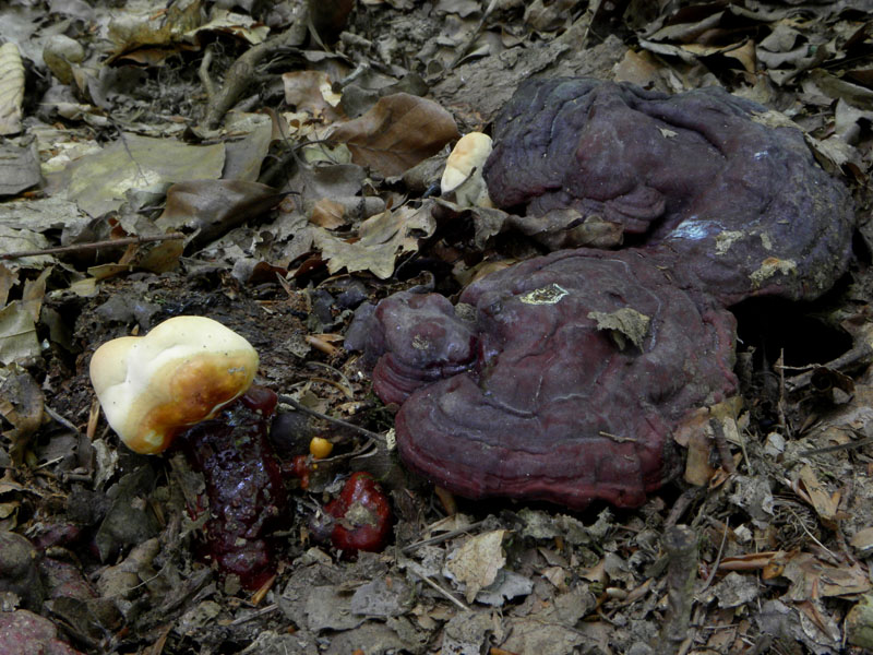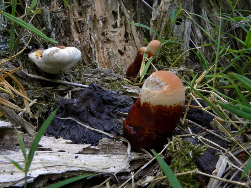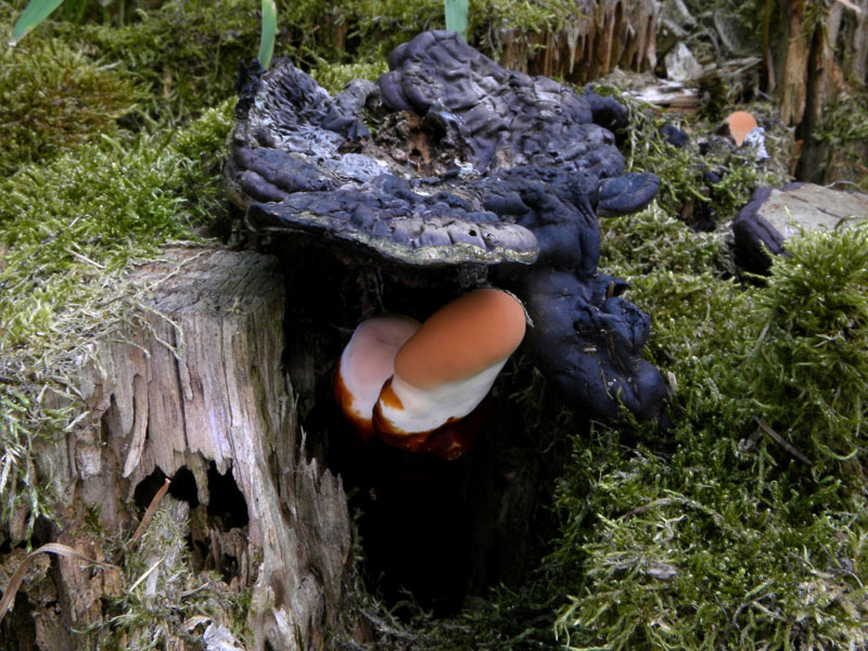 Ganoderma carnosum - Dunkler Lackporling Und noch ein unbestimmter Asco