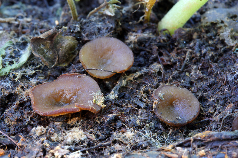 als ich heute morgen die letzten Basilikumblätter abzupfen wollte, entdeckte ich auf der Topferde ca. 20 kleine Becherlinge; der größte hat einen Durchmesser von 9mm. Kennt sich jemand damit aus?
