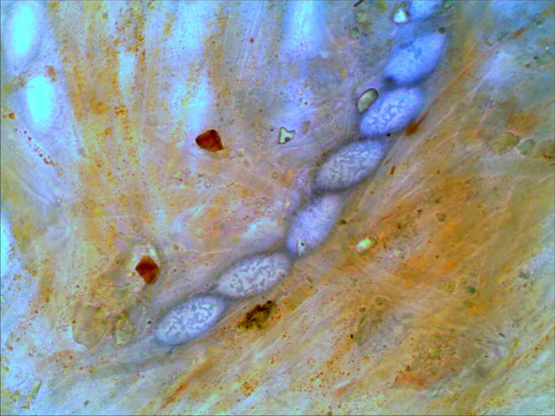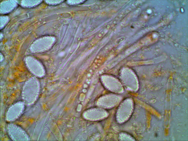 Für Cheilymenia crucipila (Sternhaariger Erdborstling) wird ein Ornament "feinwarzig punktiert und teilweise gratig verbunden" beschrieben. Das passt zu diesem Asco wohl nicht. Und Melastiza chateri besitzt völlig andere Sporenornamente. Wer kann helfen? LG Hartmut