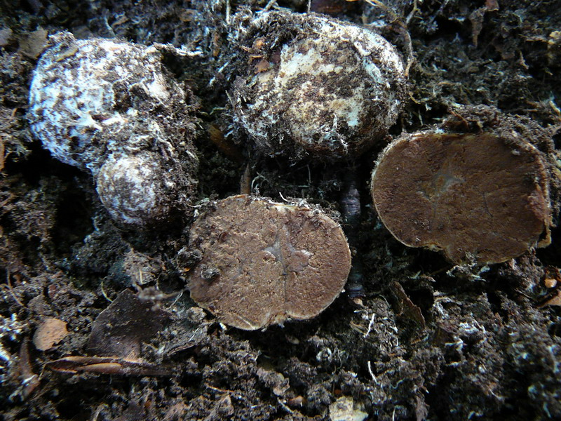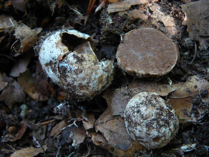 so würde ich diese starkriechenden weißen Kugeln aus dem Blauen Bruch gerne nennen. Daran werde ich noch etwas arbeiten müssen. Ich denke aber, eine Hysterangium cf. Schwanztrüffel ist es zumal.