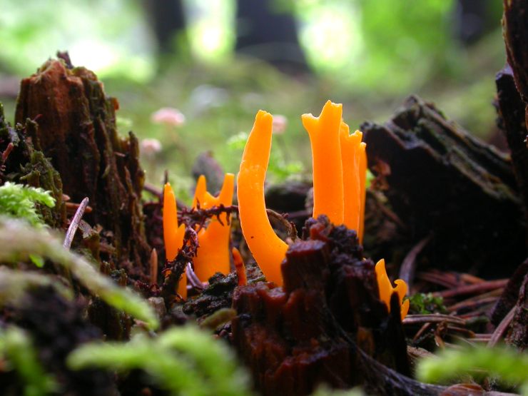 Derbe Samtfußkremplinge besiedeln die Holzstrünke.