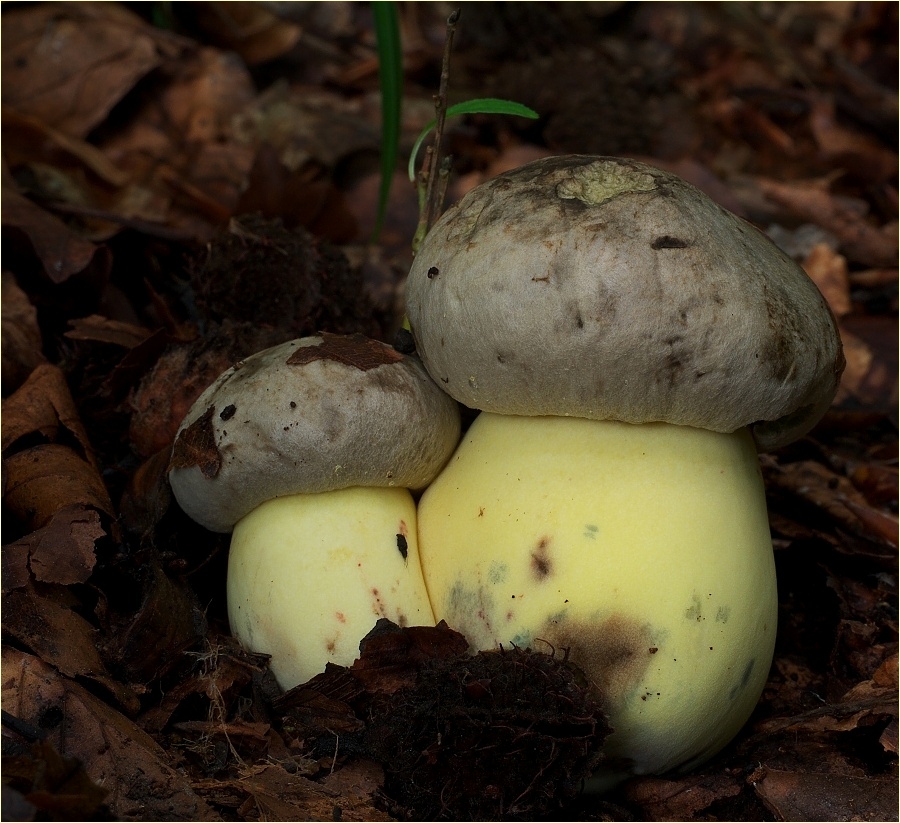 nun haben sich auch die Wurzelnden Bitter-Röhrlinge, Boletus radicans zu den Satanspilzen gesellt.