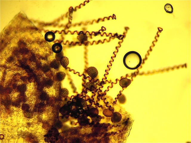 Sie erinnern mich stark an den "Schleudermechanismus"der Sporenkapseln, den ich beim Sacklebermoos/Frullania dilatata gesehen habe.