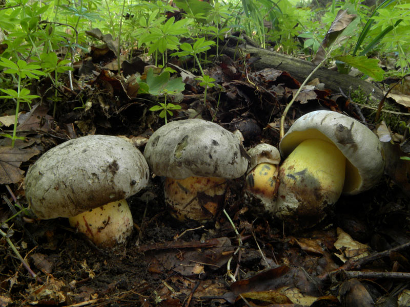 Boletus radicans - Wurzelnder Bitterröhrling Waren etwas überrascht, da wir gestern dieses Waldstück bereits aufgesucht hatten, aber