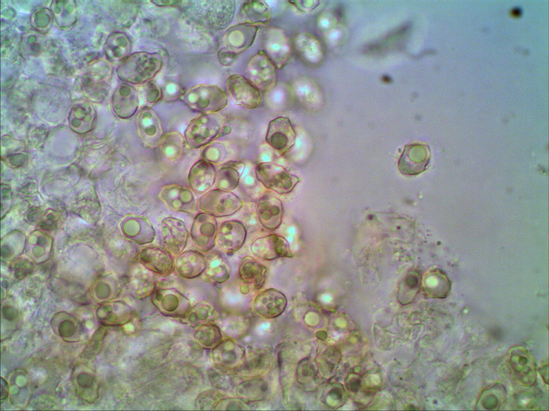 Entoloma spec. 02 mit heterodiametrischen Sporen (im Kühlschrank)