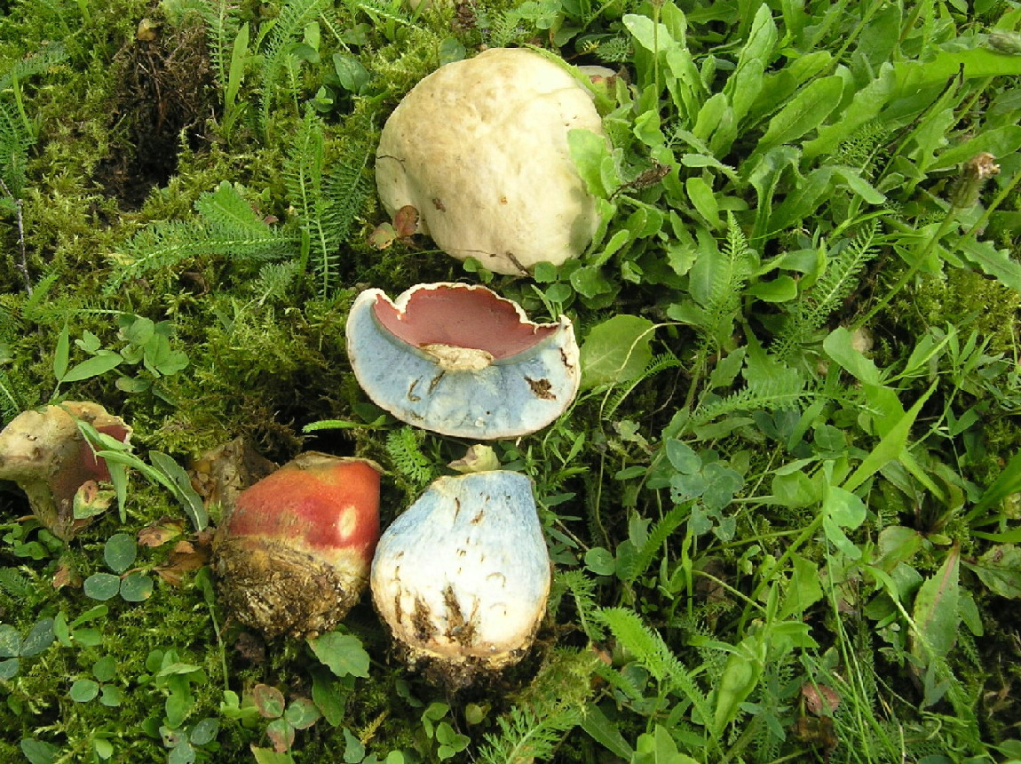 Ich traue mich ja kaum, weil ich um die bestehenden Zweifel an der Existenz dieses Pilzes in unserer Region weiß, aber wie ich es auch drehe und wende, ich komme zu keinem anderen Ergebnis. Pilz stammt aus einem kleinen Boletenparadies -erstaunlicherweise ein Wiesenstreifen, wo nur Birken wachsen-mit einer Unzahl von B. radicans, B.luridus und B.satanas. Ich habe noch nie soviele Boleten auf einen Haufen gesehen (nicht mal in Wiesbaden am Friedhof).
