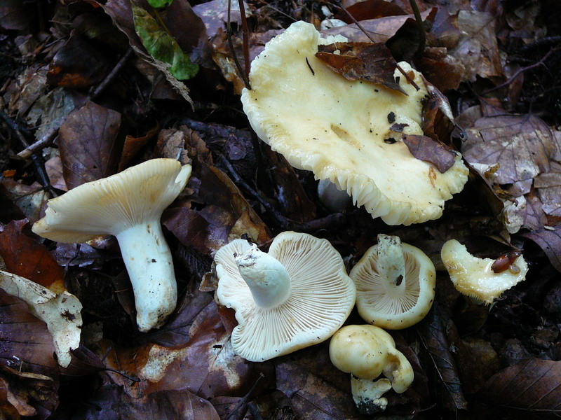 19: Russula spec. mild, mit ungewöhnlich lauchgrünen Farben, Rotbuche, Kalk
