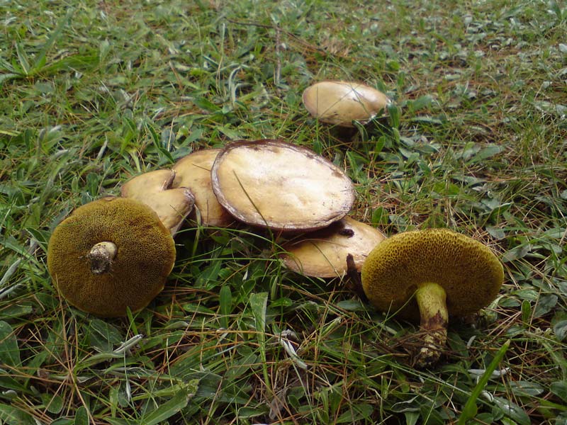Hallo Forum, am Donnerstag hatte ich auf dem Betriebsgelände von Opel/GKN zu tun. Dabei bin ich auf einem Grünstreifen zwischen zwei Gebäuden über diese Pilze gestolpert. Meine Bestimmung lautet erst mal Suillus granulatus cf. Leider habe ich vor Ort nicht auf die Farbe des Basalmycels geachtet und bei den mitgenommenen Exemplaren läßt sich das jetzt auch nicht mehr klar feststellen. Naja, habe noch öfters dort zu tun und kann die Stelle im Auge behalten. Gut bewacht wird sie ja schon mal. :-) Was mich aber eigentlich zum Posting bewogen hat ist der Fund unter Fünfnadeliger Kiefer Pinus strobus. Im Engel ist dies zwar für Östereich berichtet aber nicht für Deutschland. Hat den auch schon jemand unter Fünfnadeligen Kiefern gefunden? Auf dem Heimweg habe ich dann glatt nochmals welche entdeckt. Wieder auf einem Betriebsgelände, Hager (ehemals Thealit) in Heltersberg. Dort aber bei P. sylvestris. Zudem kommen dort noch B. radicans, soweit man es von diesseits des Zauns beurteilen kann. Bewacht werden die auch sehr gut, aber leider habe ich für dort noch keinen Passierschein. :-( Gruß und schönen Sonntag