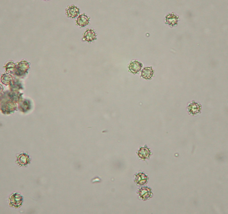 Die Sporen sind fast rundlich und messen 7,5-8 x 6-7,5µm.