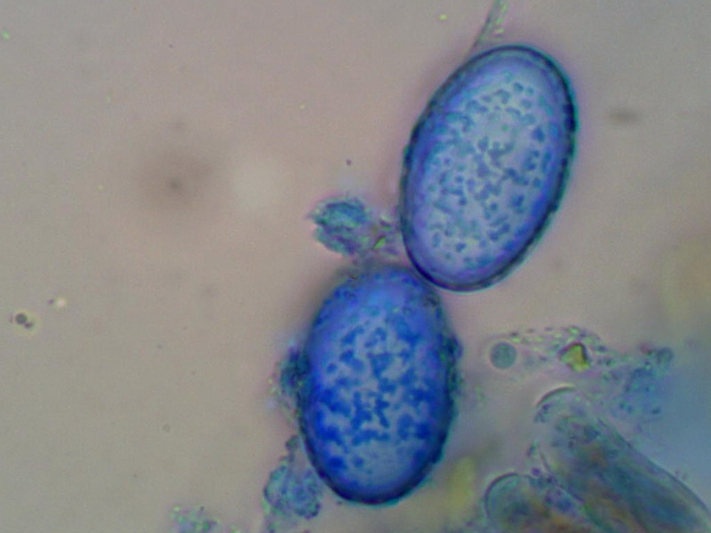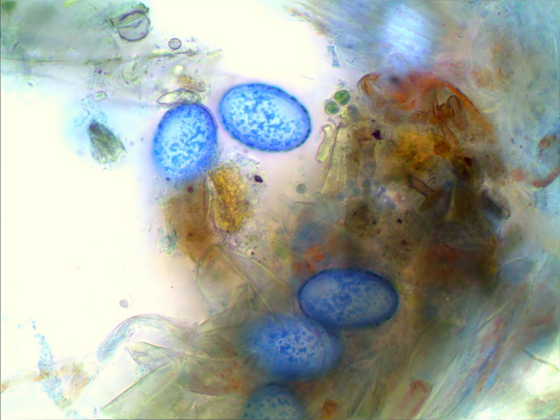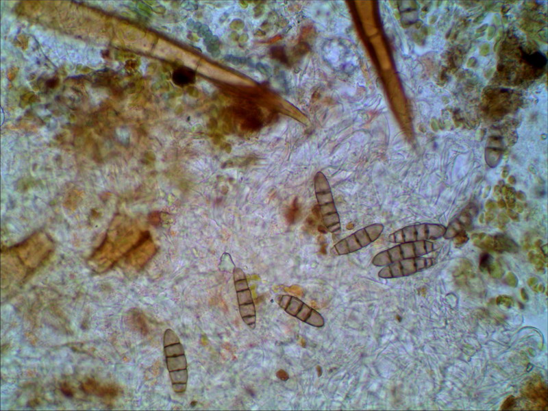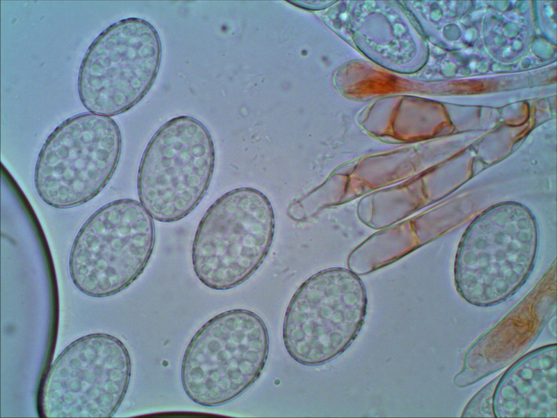 Sporen aus dem Ascus im optischen Schnitt: