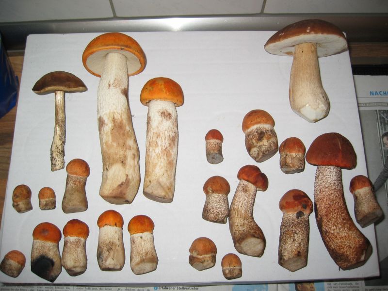 Hallo Pilzfreunde, habe heute einen wahrlich erfolgreichen Pilzfund gehabt... seht selbst. Bei den Rotkappen handelt es sich um einen Erstfund. Der Steinpilz ebenso (ich habe im Wald mindestens 2 Luftsprünge vor Freude gemacht :-)); er wurde gerade genüßlich von mir verkostet - lecker ;-). Der Birkenpilz und die Rotkappen werden vorerst getrocknet. Habt Ihr evt. eine Ahnung um was für 2 verschiedenen Rotkappenarten es sich bei meinen Funden handelt? Habe alle Rotkappen unter Zitterpappeln gefunden, eingestreut waren hier einige Birken und auch Eichen - insgesammt sandige durchlässige Böden, (Fundstelle: Traufbereich der Bäume, rasenüberwachsene Fahrspuren). Bei den rötlicheren Pilzen (rechts unten) tippe ich auf die Espenrotkappe. LG Albero