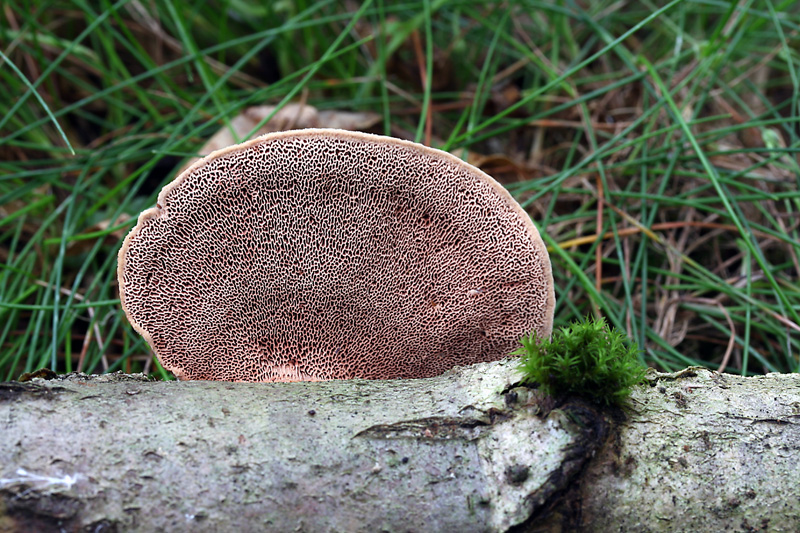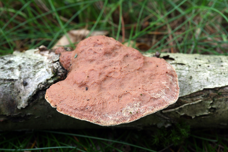 an einem am Boden liegenden Birkenast fand ich heute diesen Pilz. Meine Vermutung ist Hapalopilus rutilans (Poren zu groß?) - oder doch eine Farbvariante von Pycnoporus cinnabarinus - oder ganz etwas Anderes? Für Hinweise bin ich wie immer sehr dankbar.