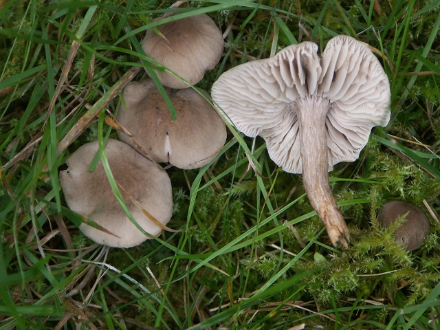 | Nicht rassistisch gemeint - nein der Pilz wurde nach Anfassen schwarz und ich hatte da eine Vermutung. Unter Birken gewachsen im kurzem Gras auf einem Friedhof. Was sagt ihr zu Rhodocybe mundula oder Rh. popinalis?