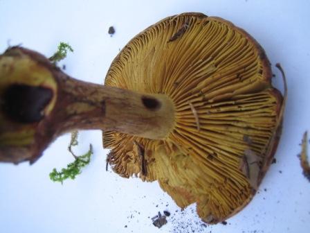 2. Art: . Art 2: Hut 8,0 cm, rotbraunmetallic; Stiel 5,5 x 1,5 cm, braun auf gelber Grundfarbe; Fleisch gelbgrün, Geruch nach stark Anishaltiger Arznei; Sporen zitronenförmig 13,0 x 6,9, KOH auf Huthaut schwarzbraun, im Fleisch rotbraun