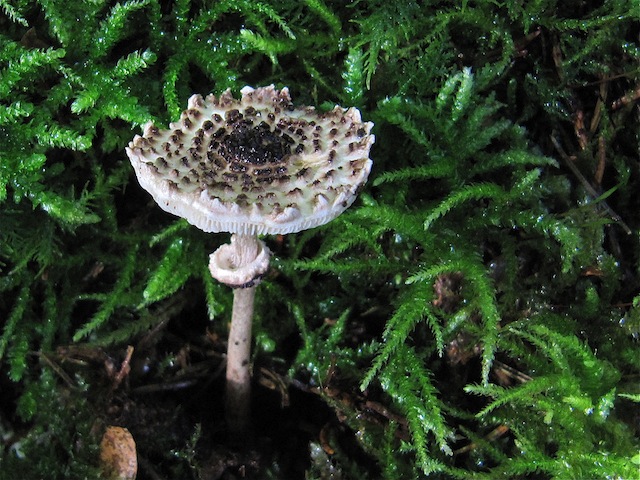 Ich habe gestern diese kleine Lepiota im sauren Jungfichtenwald am Wegrand gefunden. Ich denke, es ist L.felina/Schwarzschuppiger Schirmling.