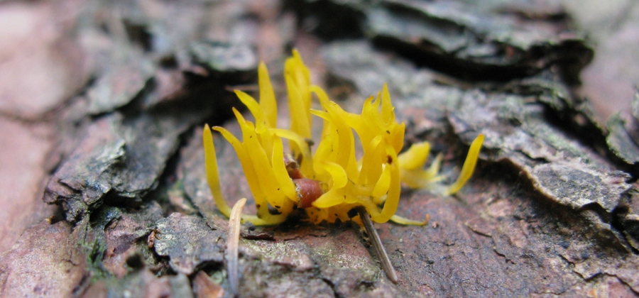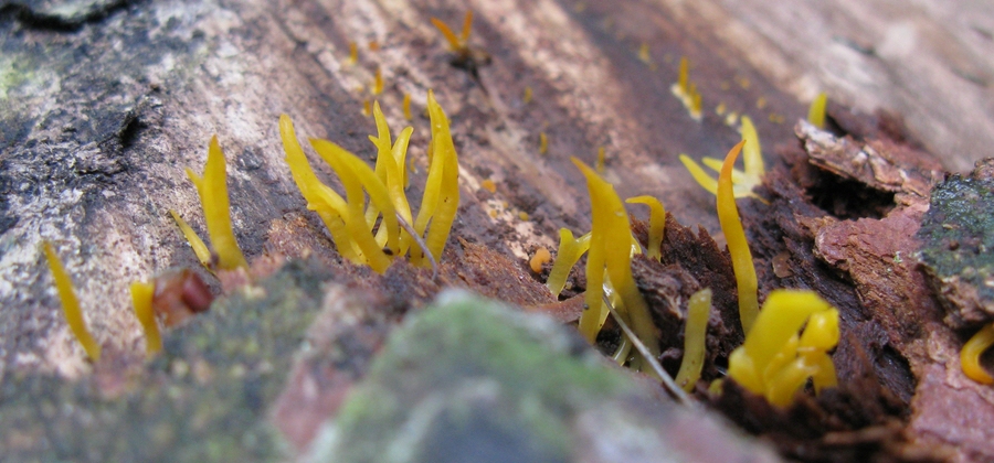 Hallo allerseits, anbei ein heutiger Fund auf Fichte, bei dem zumindest einige Fruchtkörper gegabelt sind. Erkenntlich ist er mikroskopisch duch die bis zu 3-fach septierten Sporen.