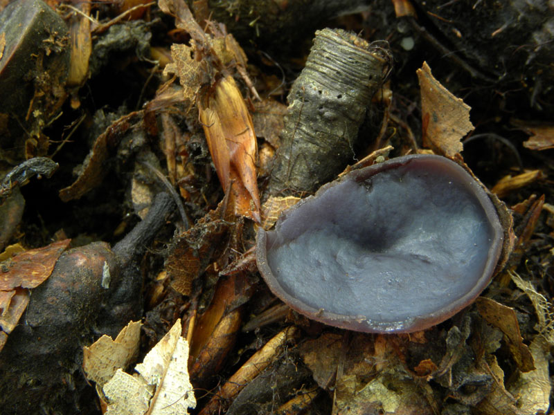 Violettmilchender Becherling - Peziza saniosa In großer Anzahl vertreten: