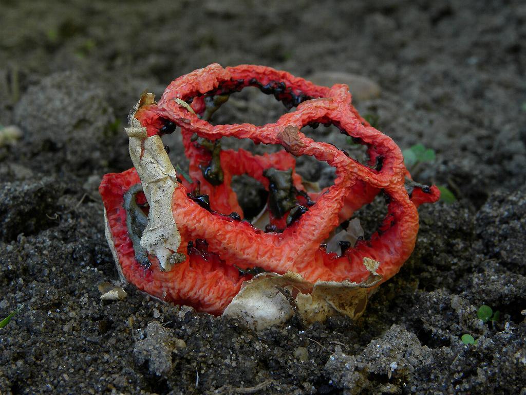 Guten Abend liebe Pilzfreunde, hier die Auflösung. Dank des Hinweis lieber Nachbarn (nur in 10 km Entfernung) bekam ich die Möglichkeit diesen schönen Pilz abzulichten. Er stand in einem Blumenbeet. Einige Eier waren schon vor einigen Tagen geschlüpft. Ich konnte gerade noch dieses letzte erwischen. Leider war zu dieser Zeit relativ warm und trocken, sodass der Fruchtkörper sich nicht vollständig entwickeln konnte. Aber das ist sicher beim nächsten mal günstiger. Ja 3 haben das Rätsel geknackt, es ist Clathrus ruber der Gitterling.