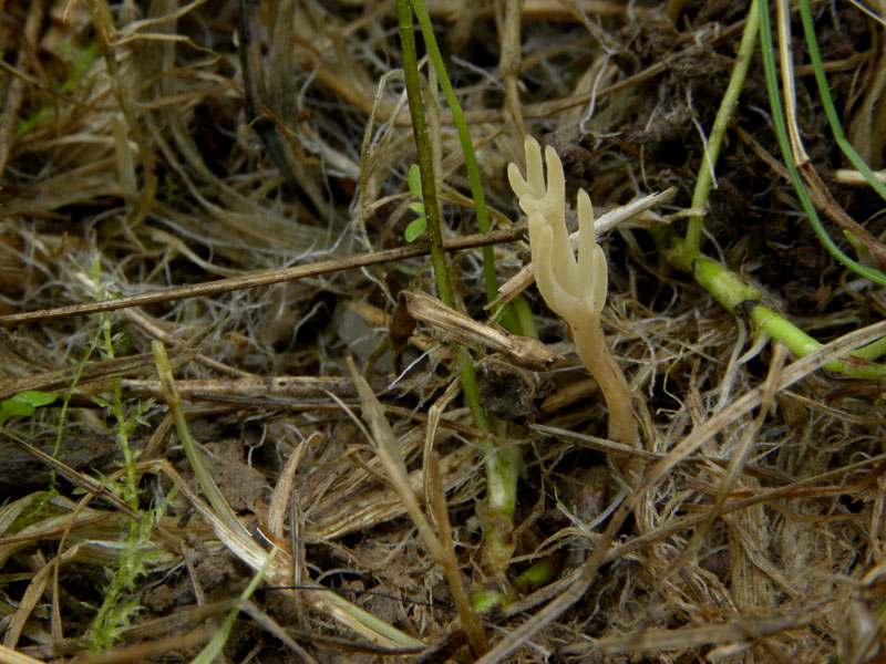 Weißes Spitzkeulchen - Clavaria falcata mit kleiner Wiesenkoralle