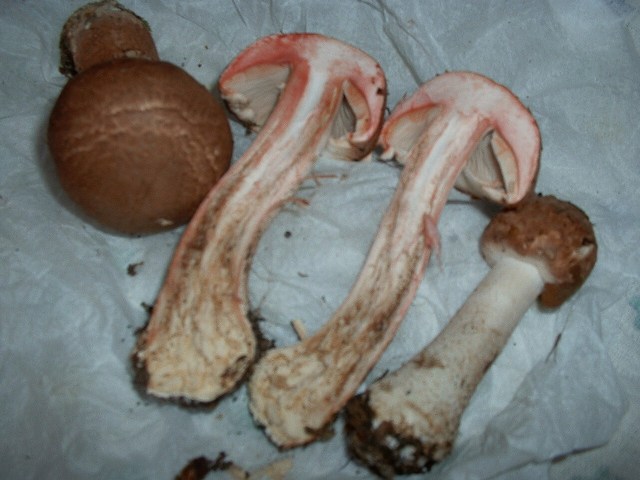 Neben vielen Erlenkremplingen habe ich dann noch einen Agaricus gefunden, den ich in die Gruppe der rötenden Champignons einordnen konnte, wahrscheinlich