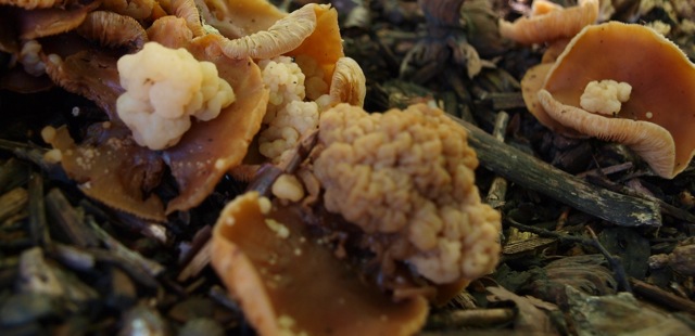 Hier hab ich noch was unbekanntes gefunden. Beim Googlen von Waldfreundrübling und Parasit erschien die Rüblingsgalle, allerdings keine Fotos, die mir wirklich weitergeholfen hätten. Sieht die Rüblingsgalle so aus?