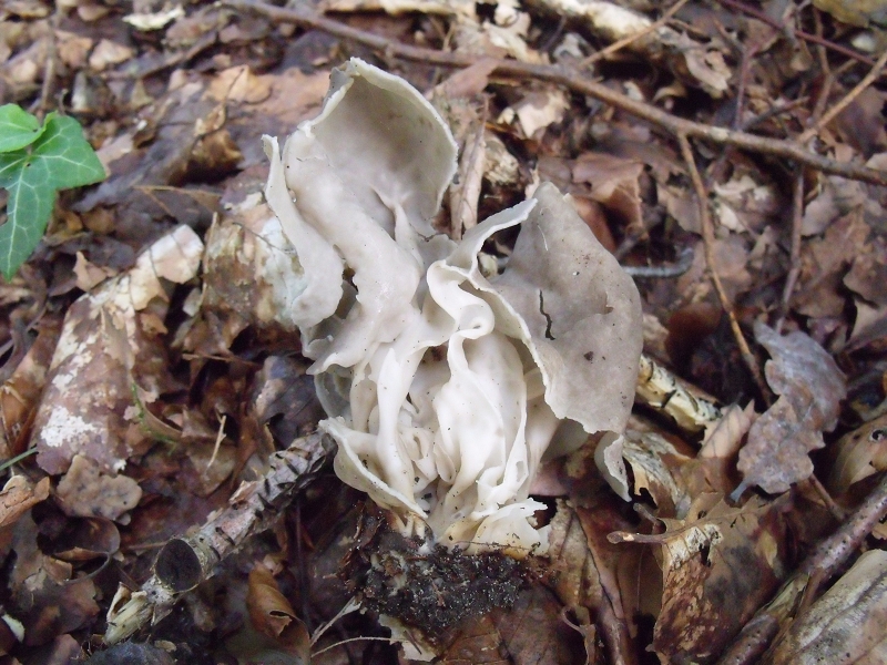 Diese Lorchel habe ich im Laubwald gefunden. Das Bild zeigt schon die aufgeschnittene Variante. Die Grubenlorchel kenne ich sonst mit richtigem Stiel und farblich kräftig abgesetztem Hut. Kann das eine Art der Grubenlorchel sein ?