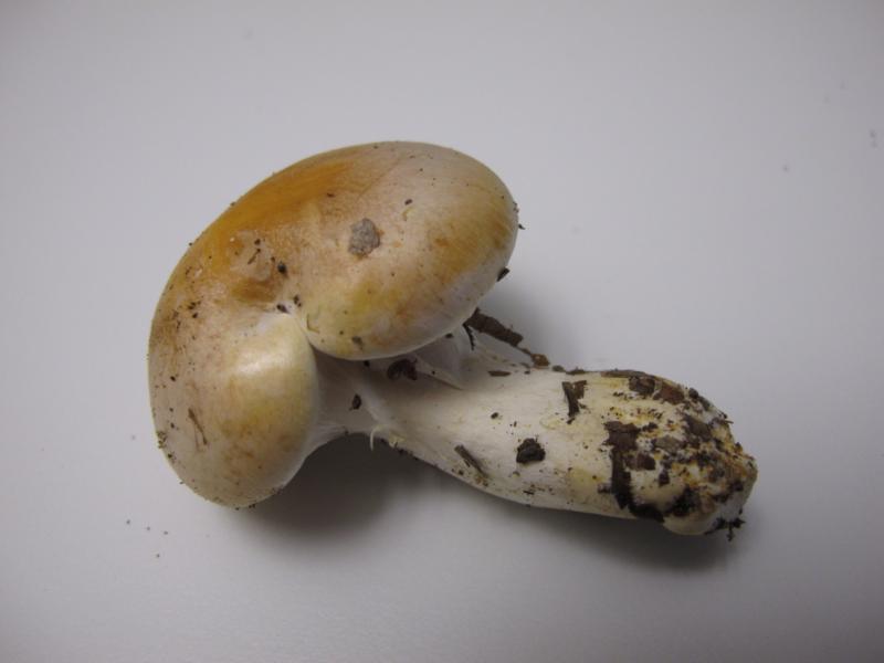 | Hallo Jesko Danke für deinen Tipp. C. claricolor gefällt mir ganz gut, obwohl die Abbildungen oft ein dickeres Velum und dunklere rötlichbraune Hutfarben zeigen, als ich es bei meinem Fund beobachte. Die Abbildung in Dähnke stimmt am Besten überein. Spricht aus deiner Sicht etwas dagegen? Dafür passen insbesondere das fehlende rosa Flecken an der Stielbasis. Die Stielbasis fleckt sogar deutlich ockerfarben (siehe Bild). Gut passt die Sporengrösse und die Sporenform zu C. claricolor. Das büschelige Wachstum führte übrigens soweit, dass vier bis fünf Fruchtkörper am Stiel zusammengewuchsen. Grüsse