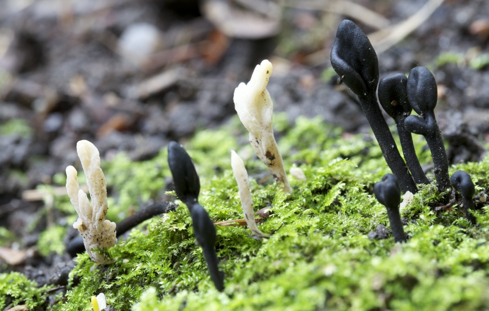 Dieser Herbst scheint eine wirklich gute Pilz-Saison zu sein. :-) Heute habe ich zwei seltsame Pilze im Wald Nähe Kühlungsborn gefunden. Den hellen würde ich als Clavulina rugosa ansprechen. Den schwarzen mit Geoglossum cookeianum. In meinem Pilzbuch steht die Art als küstennah für Trockenrasen (passt allerdings nicht, da das Wald war) beschrieben. Aber andere Arten passen nicht so recht. Was meint ihr? Der Standort war übrigens nur wenige Zentimeter eines Wald-Baches (Mischwald, im Übergang Fichten zu Buchen) entfernt. Benachbarte Moose waren Fissidens taxifolius, Isothecium alopecuroides und so.