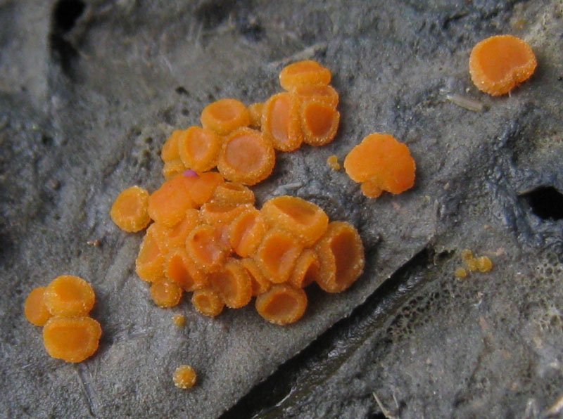 Fruchtkörper max. ca. 3 mm im Durchmesser. Aussenseite sieht granuliert aus, besser konnten wir es