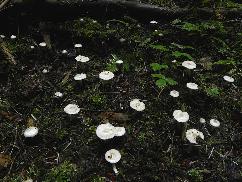 Zu hunderten vertreten, selten so gesehen. Erdblättriger Risspilz - Inocybe geophylla Gleich daneben, bzw. mittendrin immer wieder