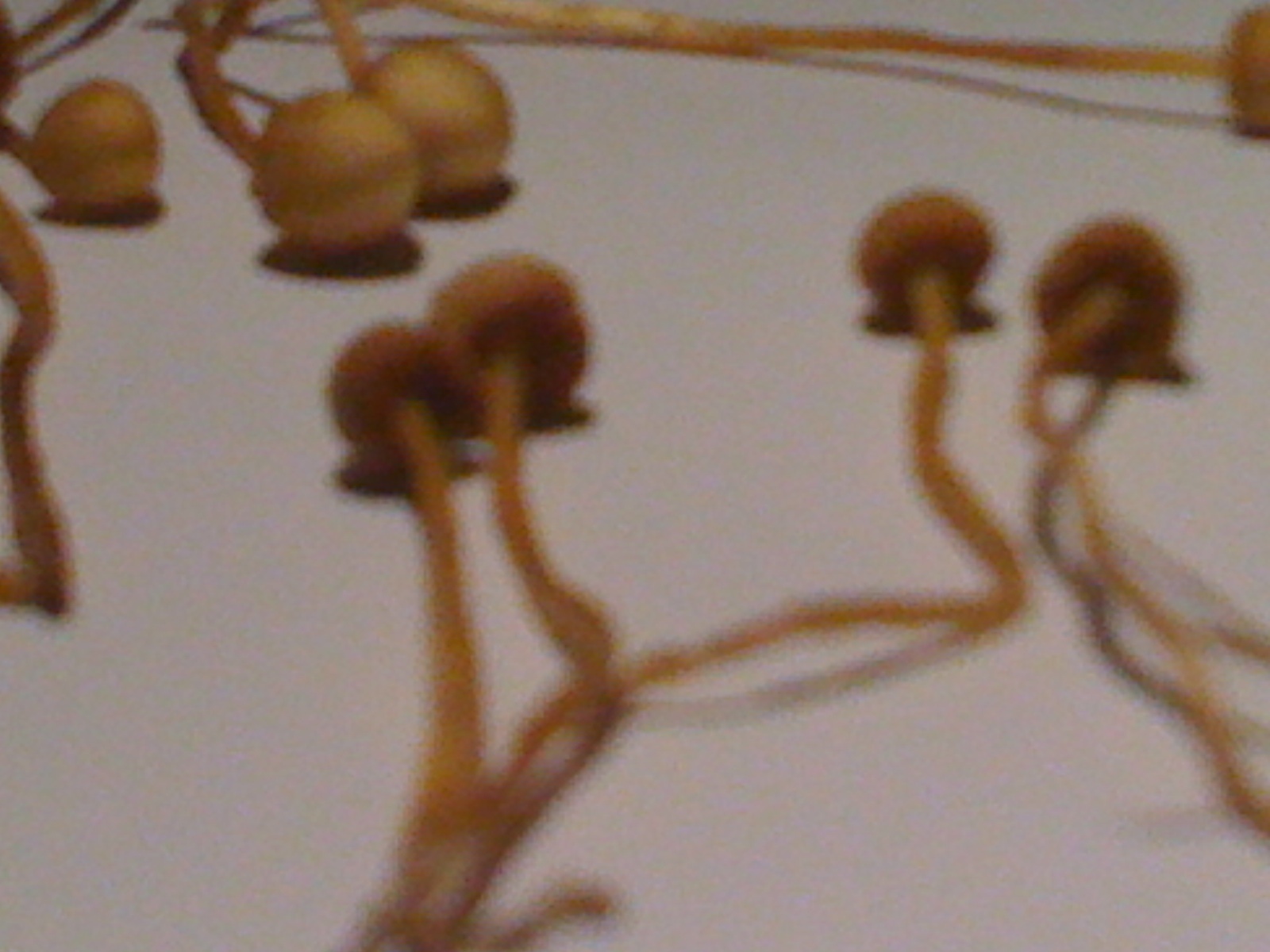 : Das sind vermutlich sehr kleine und sehr unscharf aufgenommene Pilze. Sorry, hab gerade nur eine Handycam da, morgen kann ich die Pilze gut fotografiert reinstellen. Jetzt zeig ich noch ein anderes schlechtes Bild. Vieleicht hilft´s ein bisschen.