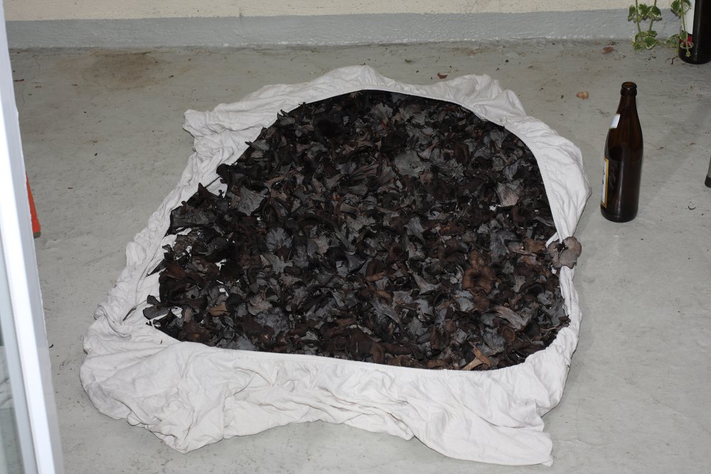: Endlich hab ich mal eine Totentrompete gefunden ! Natürlich ist das alles regional unterschiedlich. Nach zwei ereignislosen Jahren habe ich an meiner Stelle im Deister (nahe Hannover) vor ein paar Tagen gewaltige Mengen ernten können! Das Bild zeigt gerade 2/3 der Ausbeute. Der Rest tummelt sich schon im 7-Etagen Dörrex und ausnahmsweise auf 4 Etagen im leicht geöffneten Heissluftherd (bei 50°C). Die Bierflasche ist 0,5l und dient nur als Größenvergleich :-D Es waren ungefähr 5-6 Liter Trockenpilze. Der Winter kann kommen ;-) Holla