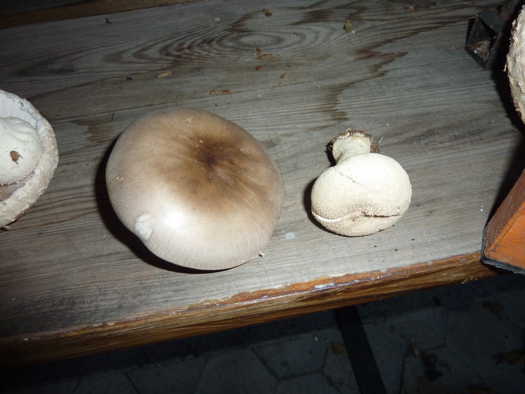 hallo ich hab im prinzip zwei fragen: 1. was ist der pilz links am bild, und ist dieser geniessbar? 2. ich fand einen haufen boviste. einer davon ist ebenfalls abgebildet, im zweiten bild hab ich ihn halbiert um ihn innen zu zeigen. innen ist dieser, wie zu sehen ist, weiss, aber in der gruppe boviste in der er stand gabs auch welche die innen braun waren. ist das jetzt ein bovist der geniessbar ist? danke