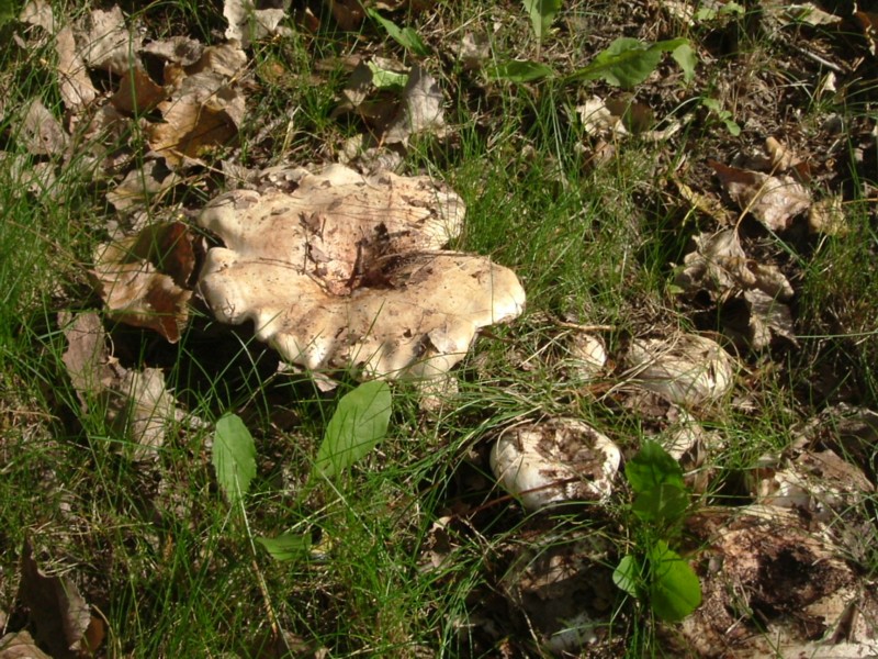 Diesen Pilz gibt's bei uns in Massen. Er ist recht groß (ca. 10 - 15 cm), kräftig und nicht gerade von angenehmen Geruch. Lamellen bräunlich, Hutfarbe elfenbein.