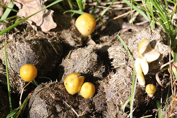 vor einigen Tagen, mitten in den Pferdeäpfeln am Weg, fand ich diese kleinen Pilze. Darft ich die als Bolbitius vitellinus ablegen?
