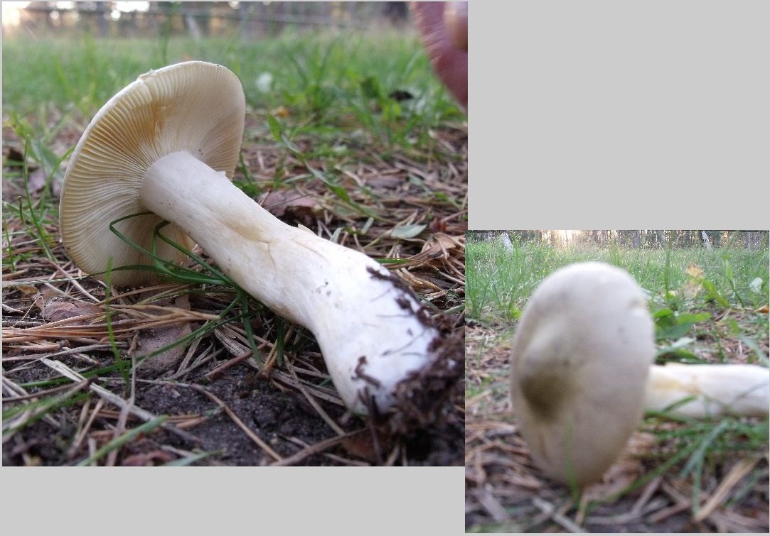 Diesen Pilz mit dem markanten Buckel haben wir im Dünenwald (Kiefern) auf Rügen gefunden. Die Draufsicht ist mir leider etwas verschwommen gelungen, aber der Pilz hat einen olivgrünen Buckel. Zuerst dachten wir an einen Täubling, aber dann haben wir die Idee schnell verworfen. Trotz intensiver Suche fällt uns nichts ein.