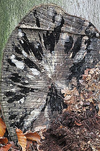 an den Schnittflächen von abgesägten Buchen im Wald fand ich heute recht kunstvolle schwarze Muster. Ist das auch ein Pilz oder hat da die Hilti des Forstarbeiters mehrfach geklemmt?
