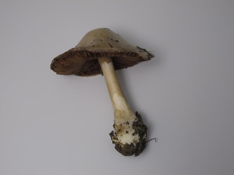 Liebe Pilzfreunde Heute habe ich bei regnerischem Wetter einen Spaziergang ums Dorf gemacht. Auf einem frisch umgepflügten Acker sind mir mehrere Exemplare des folgenden, stattlichen Pilzs begegnet. Kann mir jemand sagen, um was es sich handeln könnte? Ich bin völlig ratlos. Ich habe so etwas noch nie gesehen und kann auch nicht die Gattung bestimmen. Hut: glatt, schmierig, abziehbar, Rand gerieft, grauockerlich, gebuckelt, 12cm breit, Huthauthyphen mit zelligem Inhalt