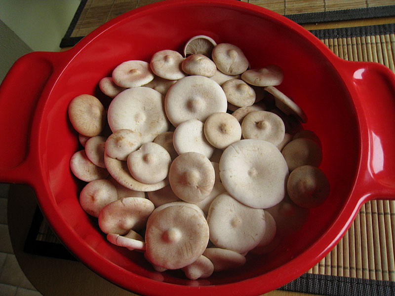 anderen Pilzen sonst auch. Zwiebeln in Butter dünsten, Pilze rein und mit Salz und Pfeffer abschmecken.