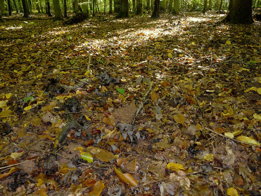 : Hallo Pilzfreunde, hier noch als Ergänzung ein Bild, das ich hier in Rheinland-Pfalz gemacht habe. Die Pilze sind so gut getarnt, dass man ohne Aufhellblitz, wodurch die hellgraue Unterseite aufleuchtet, sie in der Übersicht gar nicht auf das Bild bekommt. Im Hintergrund sieht man höchstens noch Silhouetten. Die Frage nach meinem Lieblingspilz will ich erneuern: